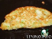 Хорошо разогреть сквовроду смазанную маслом, влить порцию теста, как на блинчик и поместить на один край начинку.