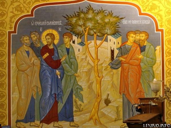 Кроме того, в этот день вспоминается иссушение Господом покрытой богатой листвой, но бесплодной смоковницы, служащей образом лицемерных книжников и фарисеев, у которых, несмотря на их внешнюю набожность, Господь не нашел добрых плодов веры и благочестия, а только лицемерную тень Закона. Подобна бесплодной, засохшей смоковнице всякая душа, не приносящая плодов духовных — истинного покаяния, веры, молитвы и добрых дел.