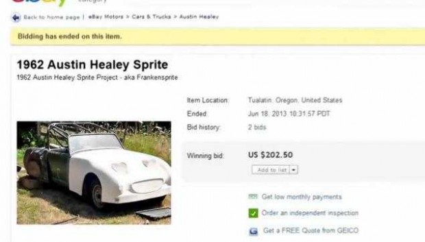 А в это время полуторагодовалая американка зашла на сайт интернет-аукциона eBay и купила игрушки для ванной комнаты, а затем и автомобиль Austin Healey Sprite 1962-го года выпуска за 225 долларов. Первым, кто узнал радостную новость, стал Пол Стаут — он получил письмо с поздравлениями и уведомлением, что его ставка в размере 225 долларов выиграла.
