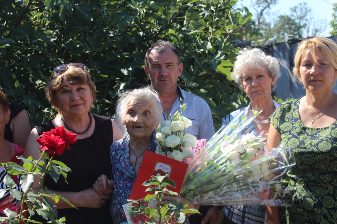 С вековым юбилеем долгожительницу приехали поздравить руководитель аппарата Администрации Ленинского района Лариса Чуб, председатель районного Совета ветеранов Екатерина Харионовская, представитель центра социального обслуживания Алла Григорюк, глава Семисотского сельского поселения Игорь Загнитко.