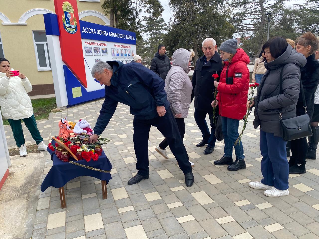 По всей России проходят акции скорби. В Ленинском районе Крыма люди выразили свои эмоции. На площади администрации организовали мемориал, сюда в течение двух дней жители района смогут принести цветы и почтить память погибших. Самые искренние слова сочувствия и поддержки родным и близким погибших и пострадавших в результате кровавого, бесчеловечного теракта в Крокус Сити холле. Светлая память ушедшим.