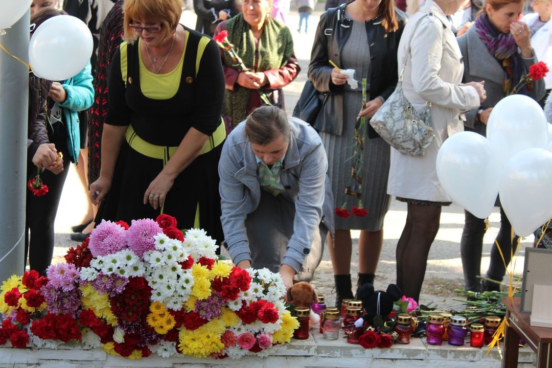В завершении мероприятия присутствующие возложили цветы, игрушки и зажгли траурные свечи.