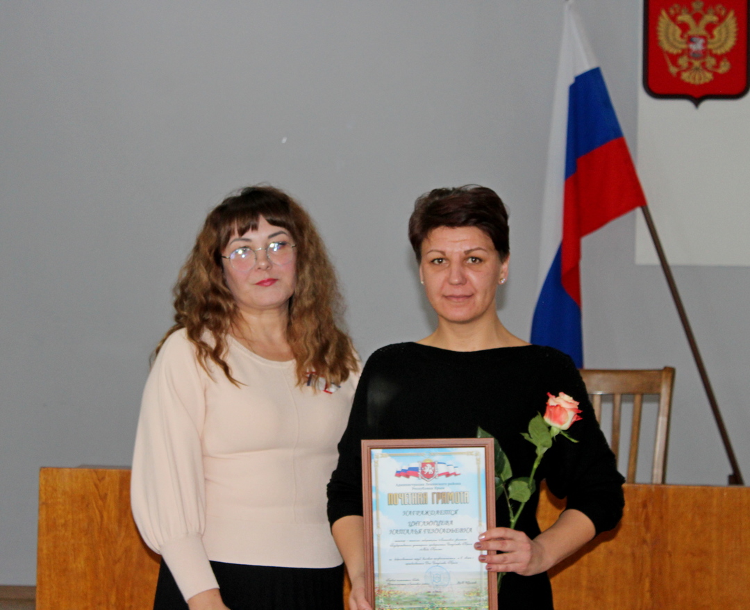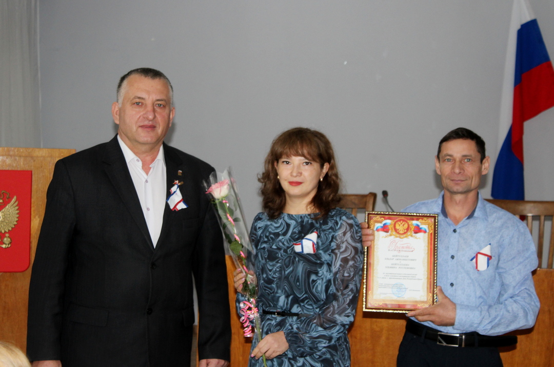 В Администрации Ленинского района сердечно поздравили жителей с праздником. Председатель Районного Совета Олег Водопьянов, заместитель Главы Администрации Наталья Попова вручили грамоты и благодарственные письма передовикам района, заслуженным работникам производств и предприятий. Поздравить присутствующих приехал депутат Государственного Совета Республики Крым Александр Шевченко.