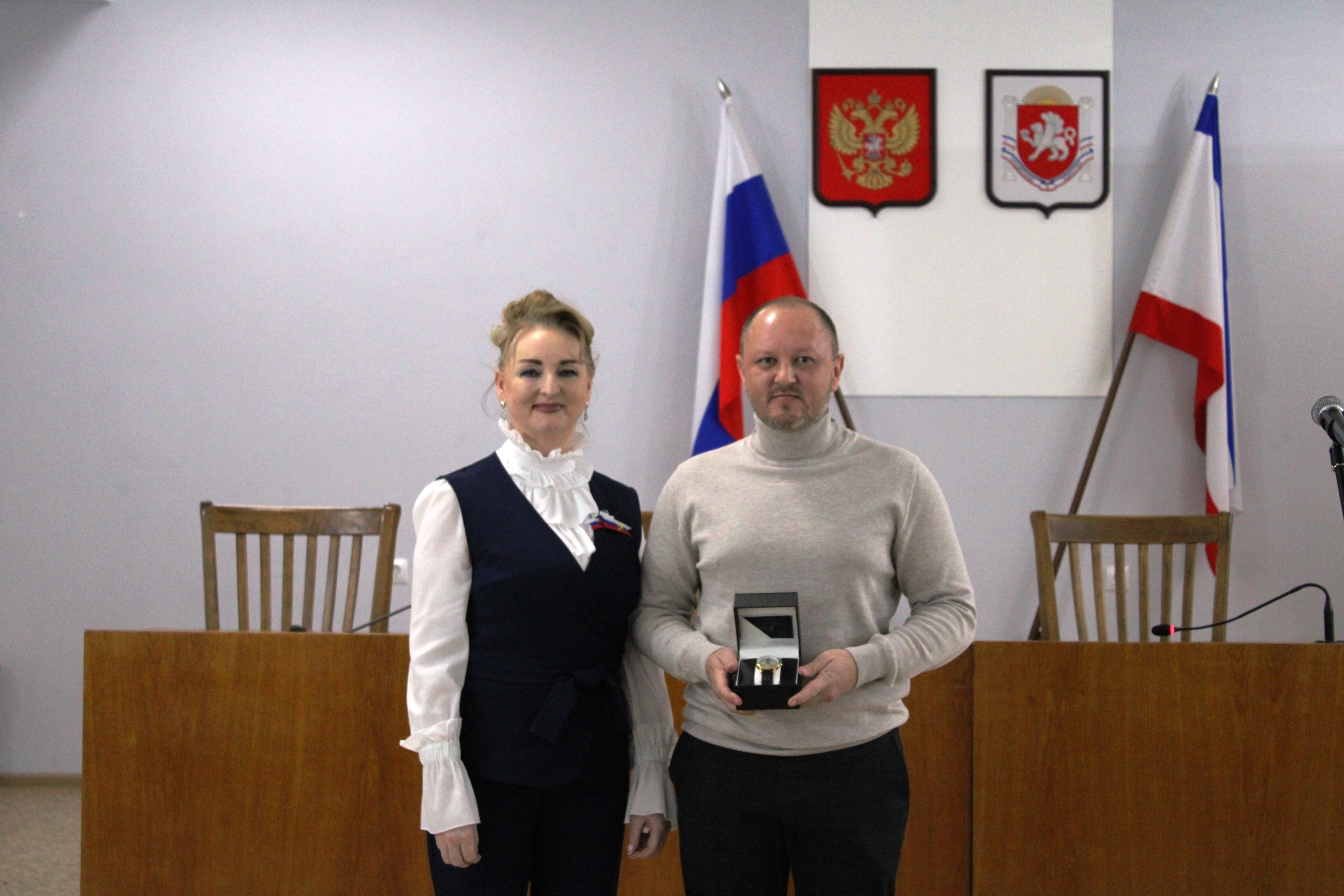 В торжественной обстановке отличительным знаком Главы Республики Крым "Часы о Главы Республики Крым" поощрен Таиров Брис Валериевич- председатель Глазовского сельского поселения.