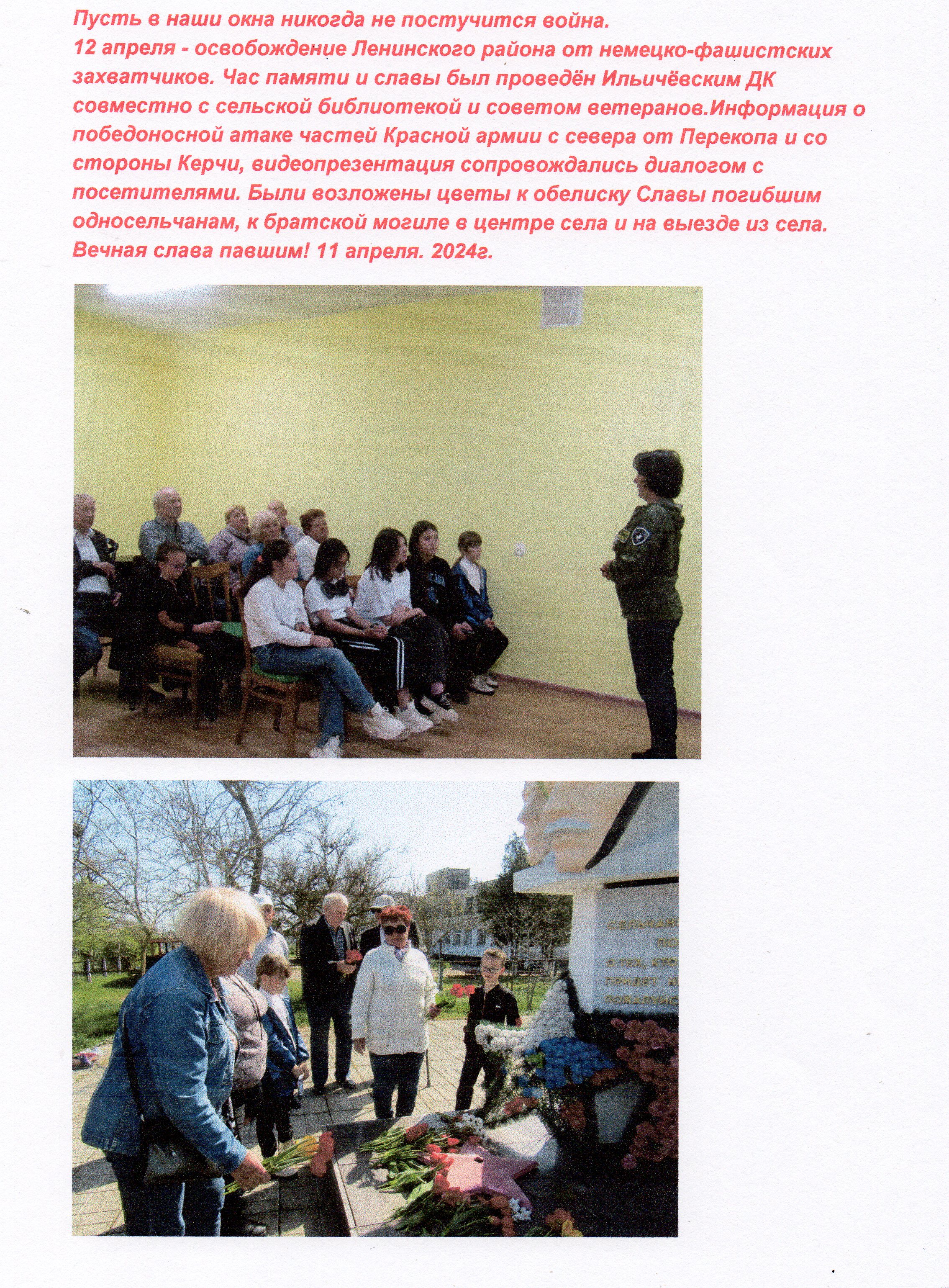 В апреле 2024 года председателями Совета ветеранов сельских поселений Ленинского района проводились Уроки мужества образовательных организациях района