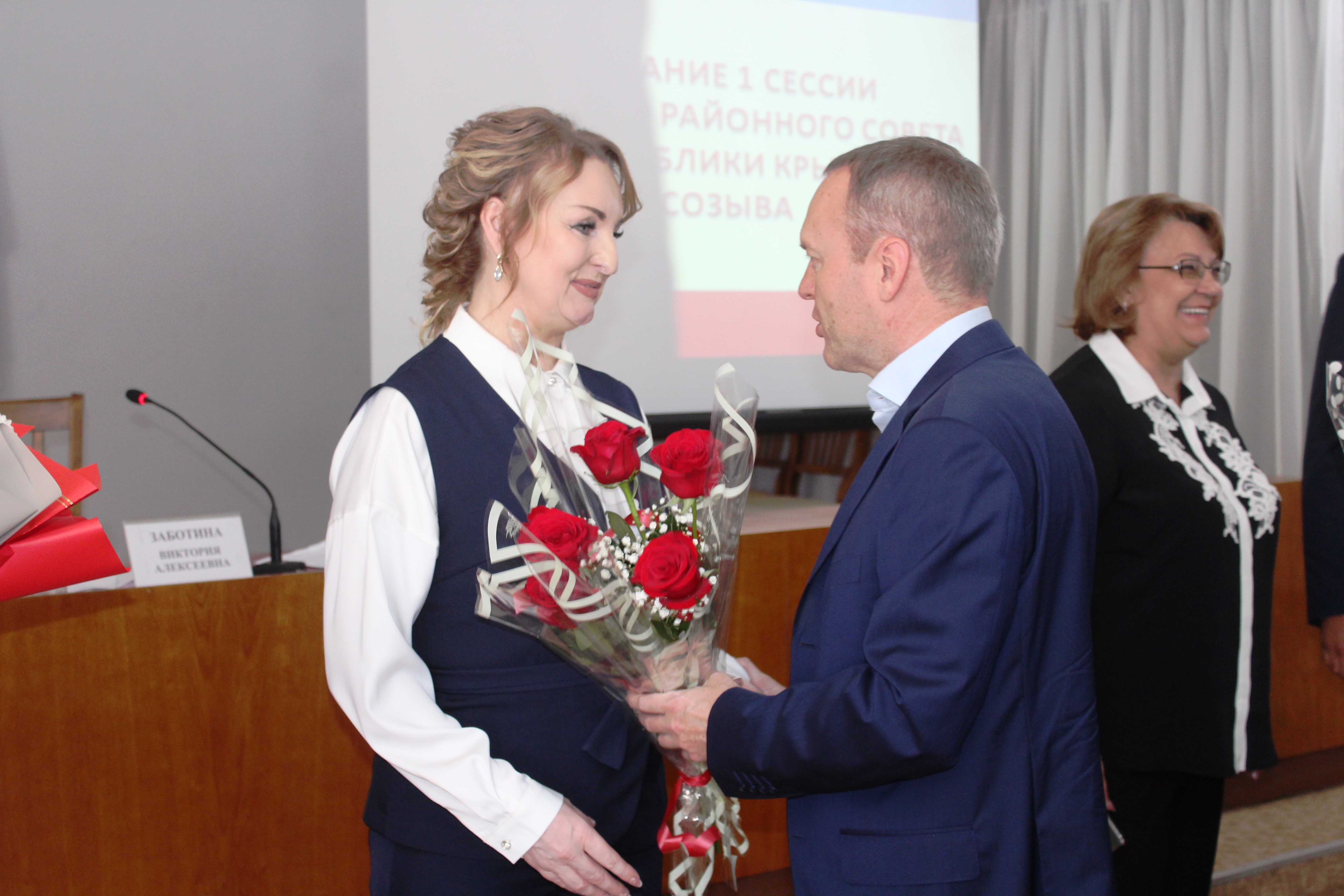 Заместитель председателя Совета министров Республики Крым Елена Романовская и первый заместитель председателя Государственного Совета Республики Крым Андрей Козырев передали Виктории Алексеевне Заботиной поздравления с избранием от Главы Республики Крым Сергея Валерьевича Аксенова и спикера Крымского парламента Владимира Андреевича Константинова, председателя правительства Республики Юрия Михайловича Гоцанюка. Они заверили, что Ленинский район был и остается в приоритете и нашему региону со стороны Крымского руководства будет оказываться всесторонняя поддержка.