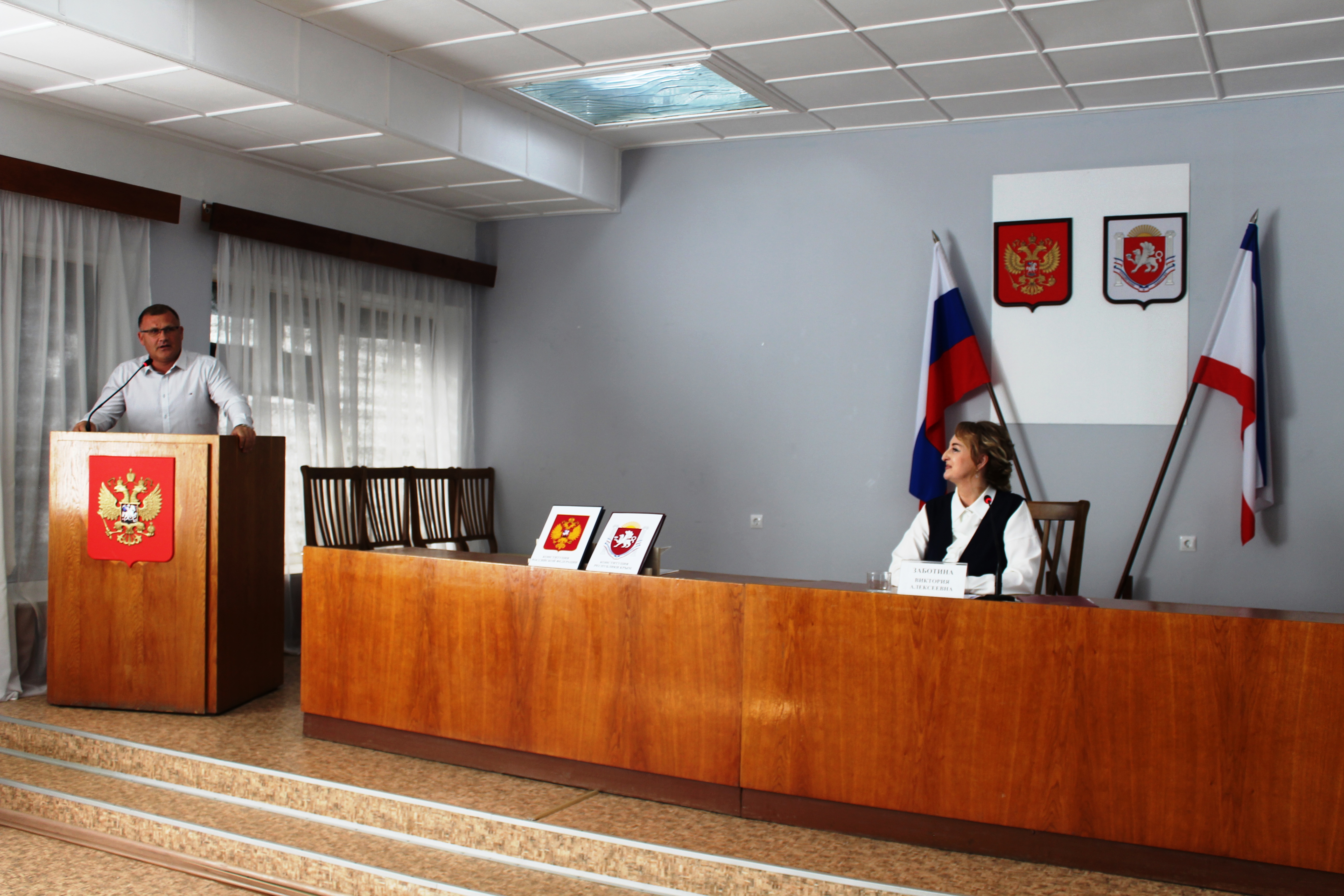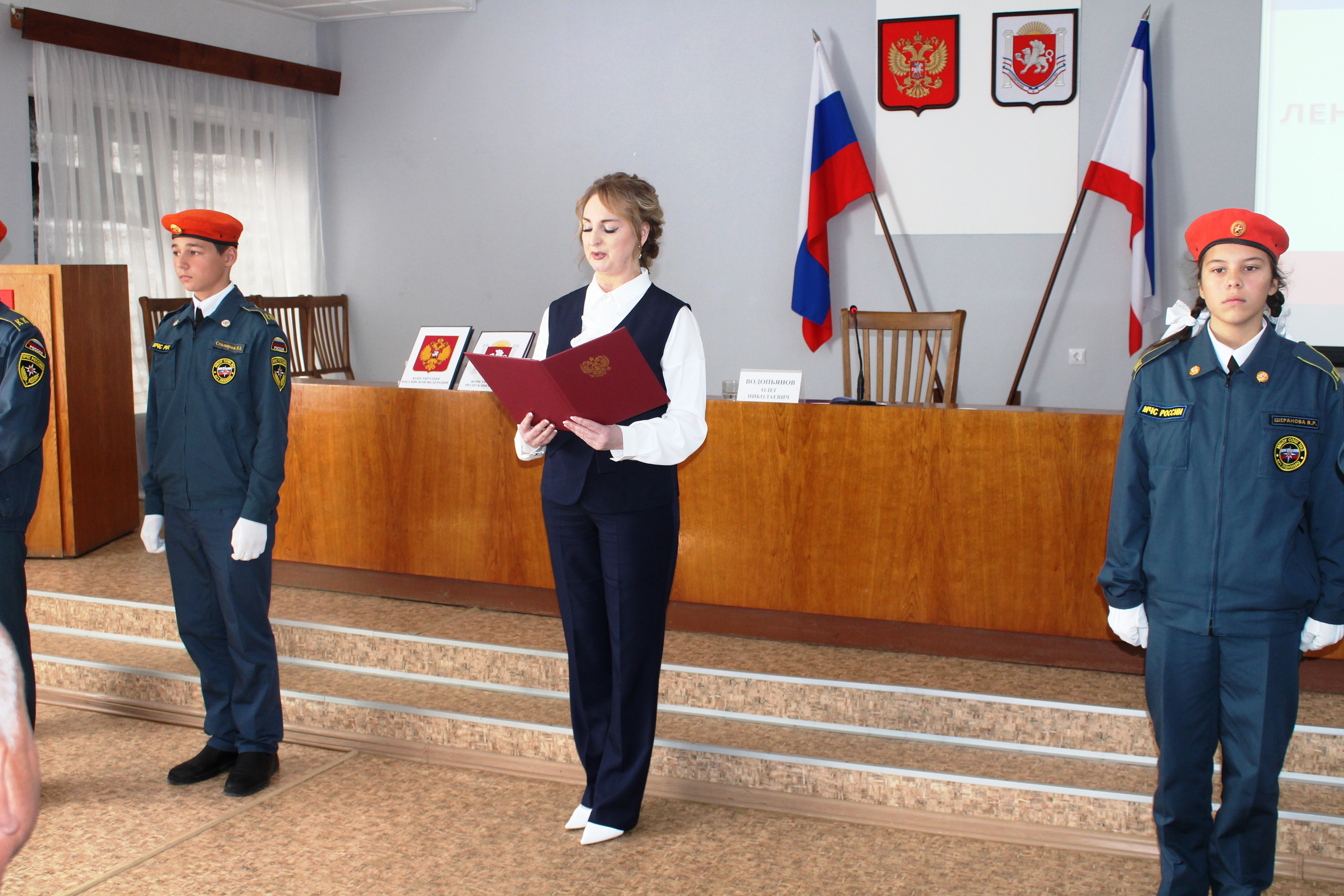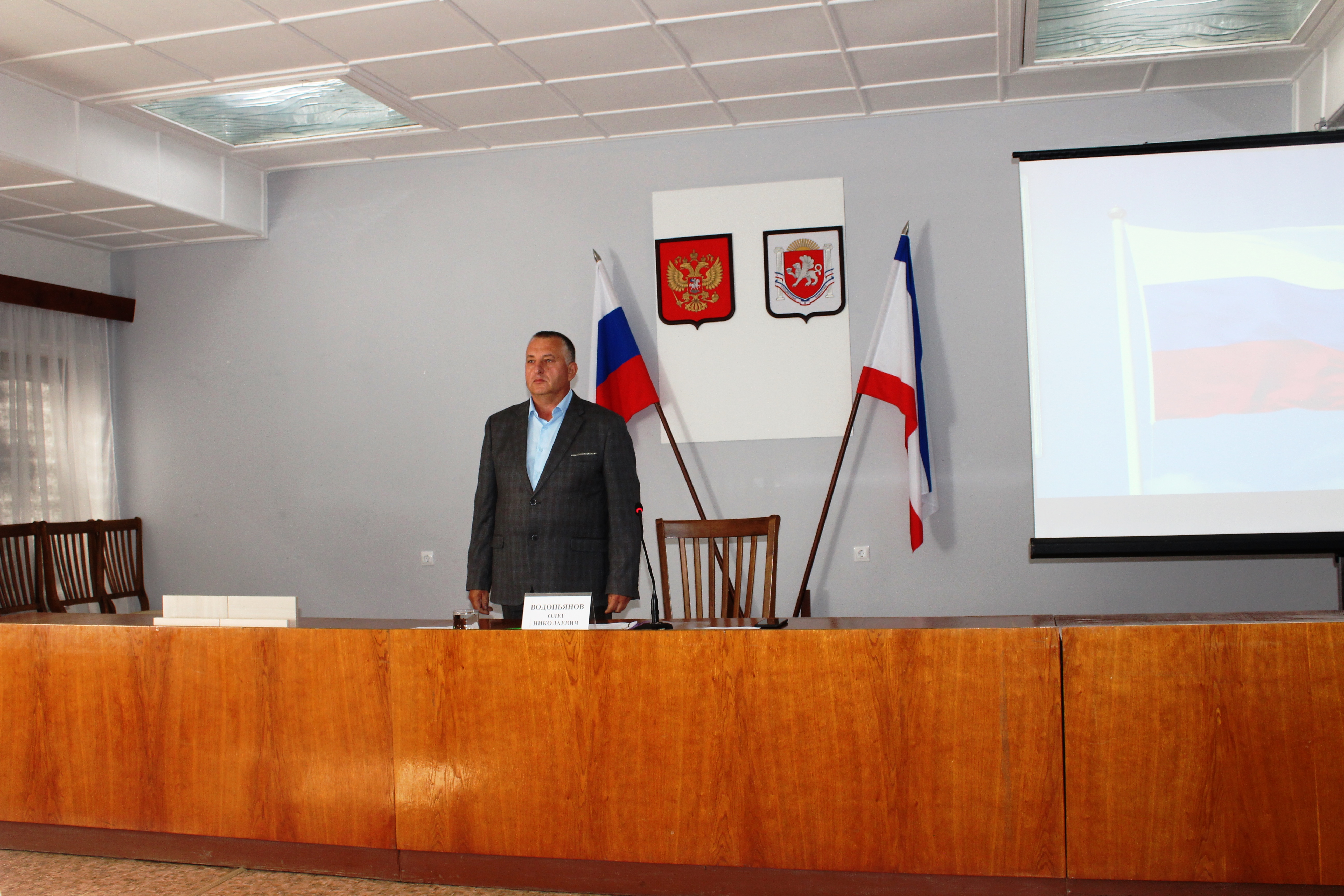 Отметим, что сессия и принятие присяги новой главой нашего муниципального образования проведены на очень высоком уровне. На торжественном мероприятии под гимны России и Республики Крым юнармейцами были вынесены государственные флаги, Конституции России и Республики Крым, текст присяги.