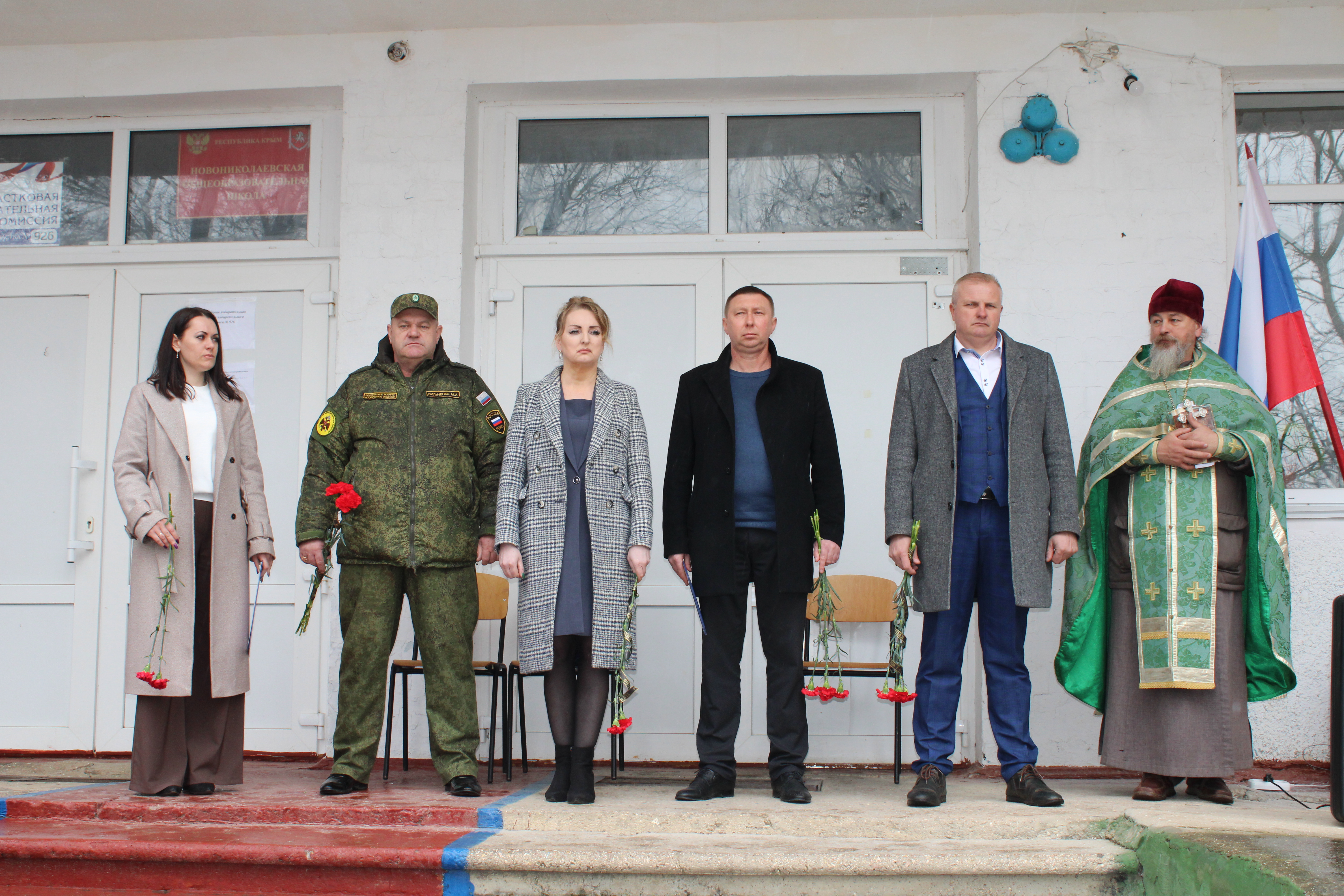 В торжественной церемонии открытия мемориальной доски приняли участие мать воина Родионова Наталья Анатольевна, братья, родные и близкие люди, а также — заместитель главы муниципального образования Ленинский район Виктория Заботина, заместитель главы Администрации Ленинского района Валерий Макрушин, командир поискового отряда «Обелиск» Ленинского района, военно-патриотического поискового объединения «Крым – Поиск» Михаил Сильченко, настоятель храма Иоанна Кронштадтского отец Ростислав, глава Новониколаевского сельского поселения Александр Самохвалов, директор МБОУ Новониколаевская СОШ Светлана Березинец, педагоги и учащиеся школы, жители села.