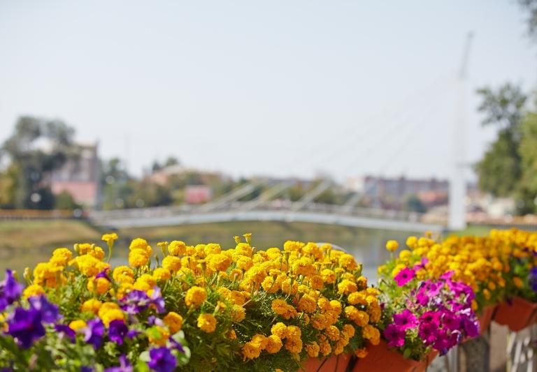 В честь 70-летия освобождения города и Дня Независимости Украины сегодня, 24 августа, набережную реки Лопань около сквера «Стрелка» украсили 80 тыс. желто-синих цветов, выстроенных в непрерывную линию длиной около 2,8 км.