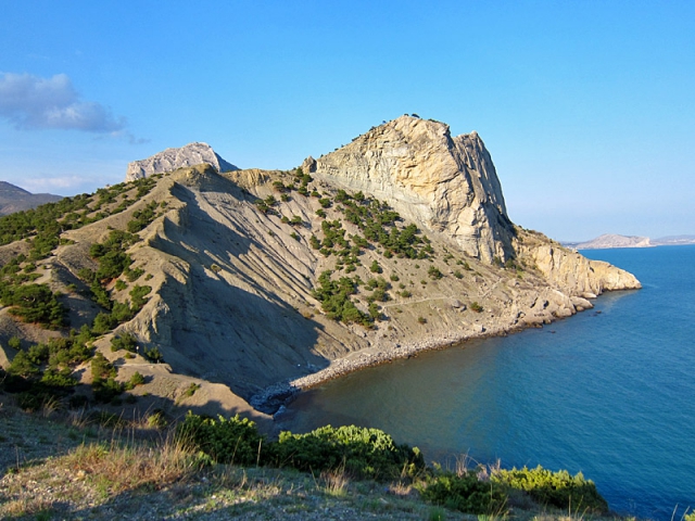 Если хотите романтики — отправляйтесь в Можжевеловую рощу, что возле поселка Новый Свет. В этом месте снимали сцену свидания главных героев — Романа и Наташи. По тропинке в Можжевеловой роще можно подняться к мысу Капчик, который в народе называют Ящерицей. Есть у мыса и другие названия — Коба-Бурун, Пещерный мыс. Кстати, такое название дано неспроста: в центральной части мыс пронзен узкой галереей Сквозного грота. К нему ведет хорошо оборудованная тропа, сооруженная еще в начале ХХ века по указанию князя Голицына, владельца этих мест.
