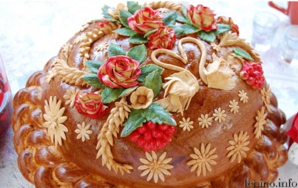 Главным блюдом был каравай, который посвящали солнцу и ели по кусочку, раздавая домочадцам, соседям и всем проходившим мимо странникам. Оставшиеся крошки нужно было бросать за спину. Люди верили: кинешь хлеб-соль назад — по осени с хлебом-солью будешь.