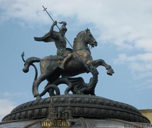 святой Георгий считается покровителем Москвы. Также святой Георгий — покровитель воинства. Изображение Георгия Победоносца на коне символизирует победу над диаволом — «древним змием» (Откр. 12, 3; 20, 2). Это изображение было включено в древний герб города Москвы.