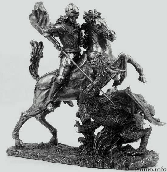 На Руси почитание Георгия Победоносца приобрело особое значение. Сидящий верхом на коне и поражающий змия он запечатлен в центре герба Российского государства. Это изображение основано на предании и относится к посмертным чудесам святого великомученика Георгия. Рассказывают, что недалеко от места, где родился св. Георгий в городе Бейруте, в озере жил змей, который часто пожирал людей той местности. Суеверные люди той местности для утоления ярости змея начали регулярно по жребию отдавать ему на съедение юношу или девицу.