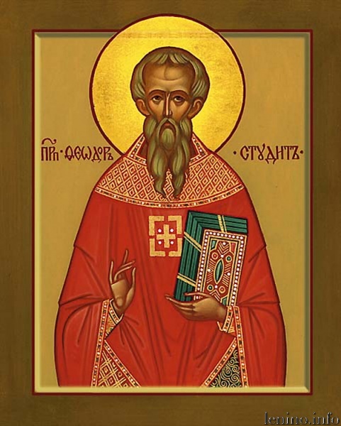Преподобный Феодор Студит, память которого отмечается в этот день, родился в 758 году в Константинополе и получил широкое и разностороннее образование. В 796 году за ревность о хранении церковных правил и обличение беззакония императора Константина VI Багрянородного после жестоких мучений был сослан в заточение.