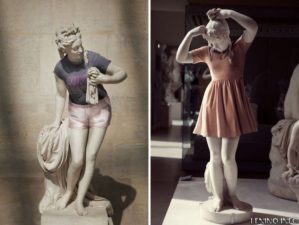 Французский фотограф Лео Кайлард представил экспонаты музея в актуальном модном облике: мраморные статуи "Пораженный Титан", "Франсуа Дюмон", "Воскресение Христово", "Жермен Пилон" и другие были "осовременены" при помощи магии графического дизайнера Алексиса Персани.