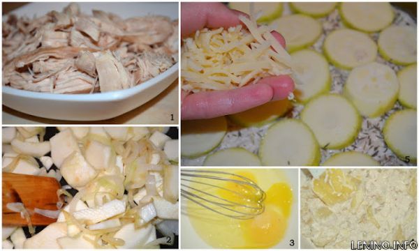 2) Лук нарезать полукольцами, чеснок нарубить, 1 цукини тоже нарезать на небольшие ломтики. разогреть 2 ст. ложки оливкого масла, обжарить пару минут лук с чесноком. Добавить цукини и тушить все вместе 10 минут.