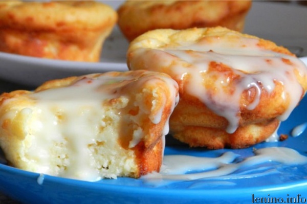 5) Выньте из духовки, подождите пока остынут и вытащите из формочек. Подавайте со сметанным соусом (смешать сметану и сахарную пудру) или с любимым вареньем.