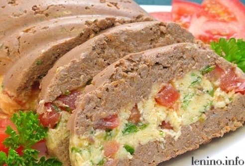 Выложить половину печени в форму (я использовала форму размером 11х23 см, и высотой 5 см), разровнять.