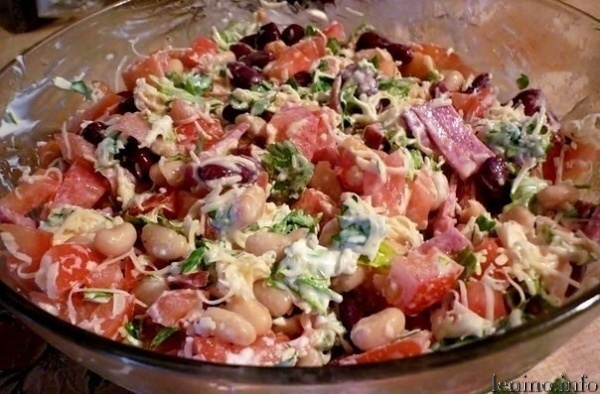 Простой салат в приготовлении, без всяких изысков, но всегда идет на " ура". Продукты для этого салата есть у каждого в холодильнике. |
