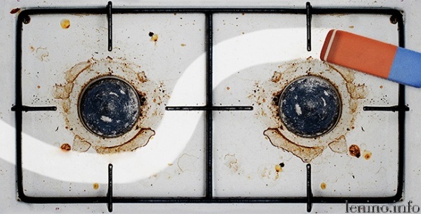 Убираем жир с поверхности плиты и с мелких деталей обычным ластиком. Этим способом пользуются сотрудники профессиональных клининговых служб.