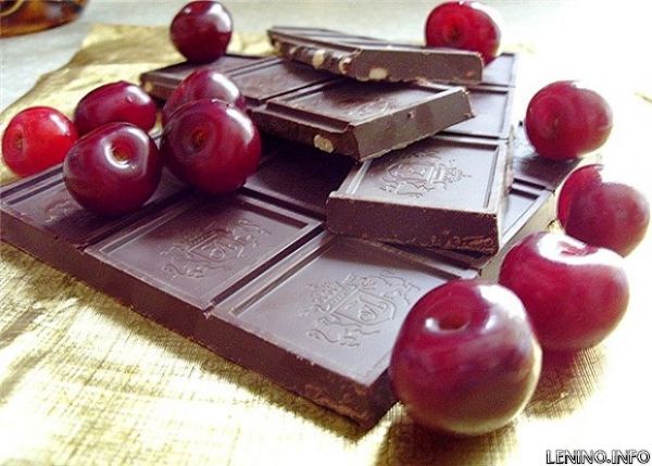 Очень хорошо гармонирует шоколад с мякотью спелых вишен, персиков и сладких групп.