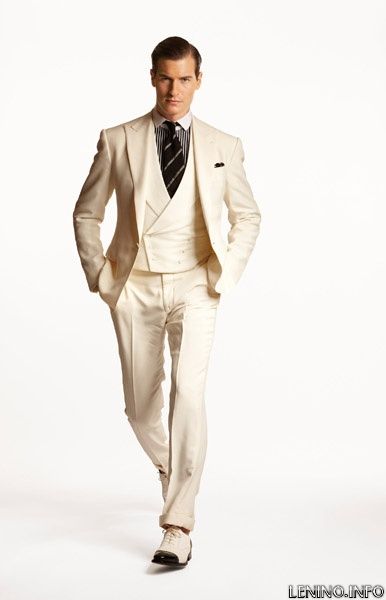 Все, что делает компания Ральфа Лорана, отличается особой аристократической элегантностью в духе Восточного побережья США. Это элегантность "старых денег", привилегированных университетов "Лиги плюща", огромных семейных особняков и респектабельных свадеб в саду. Для одной из них и создан светлый летний костюм с шалевым жилетом и прямыми брюками с отворотами. Покрой в ретростиле напоминает об эпохе сухого закона, как и темная сорочка с белым воротником и черно-белые туфли-броги. Так мог бы одеваться самый трендовый литературный персонаж нынешнего лета Джей Гэтсби.