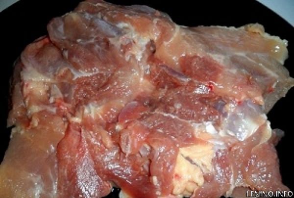1. Делаем разрез с внутренней части окорочков и отделяем мясо от костей. Затем укладываем мясо кожей вниз и немного отбиваем, чтобы получились пласты.
