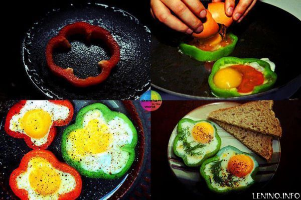 В последнее время набирает популярность тенденция, когда одни блюда красиво подаются внутри других блюд. Это может быть миска супа из моллюсков, поданная внутри хлебного шара, бекон и шоколад в яблоке и даже яйца сжаренные внутри других овощей, чтобы придать блюду уникальную форму, или дополнительный аромат. Вот, например, яйца приготовленные внутри болгарского перца:
