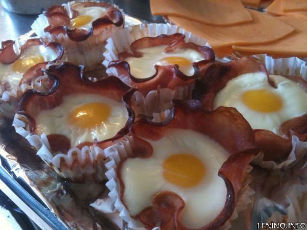 1. Начнем с кексов из бекона и яйца: