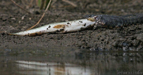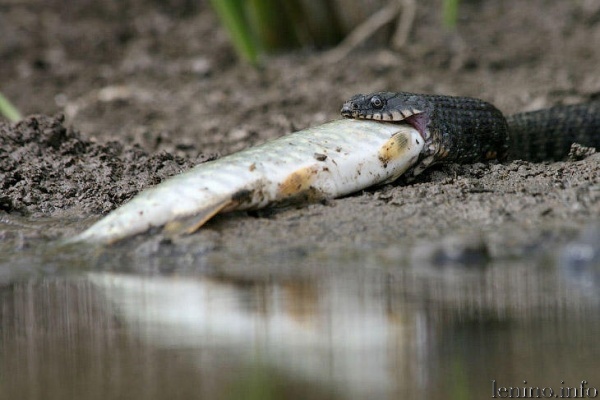 Если добыча слишком крупная, трапеза может затянуться на час и даже дольше. Некоторые ужи погибают, не рассчитав силы и выбрав слишком крупную рыбу.