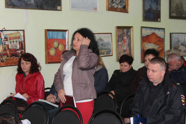 Заместитель начальник отдела МВД РФ по Ленинскому району РК по охране общественного порядка Сергей Терещенко выступил с информацией по оборудованию участкового пункта полиции. Необходимо выделить деньги на ремонт. Остро стоит вопрос по установке видеокамер на проездных улицах, перекрестках.