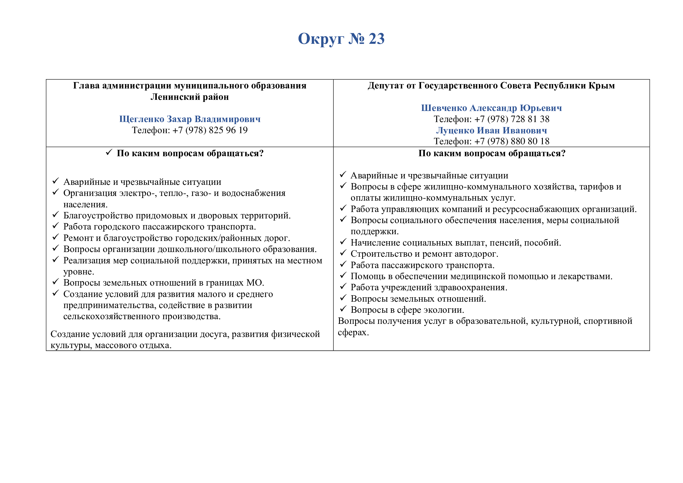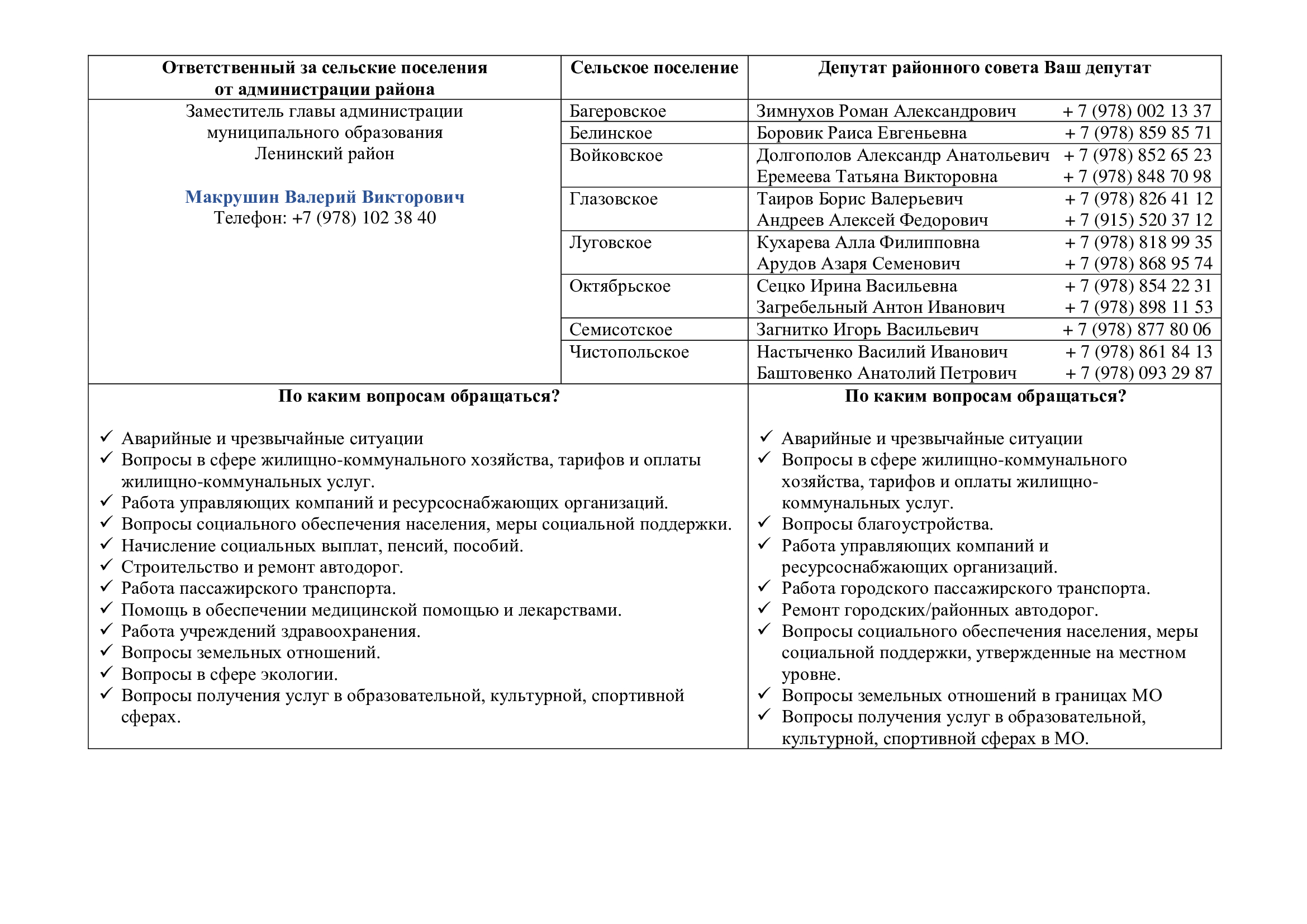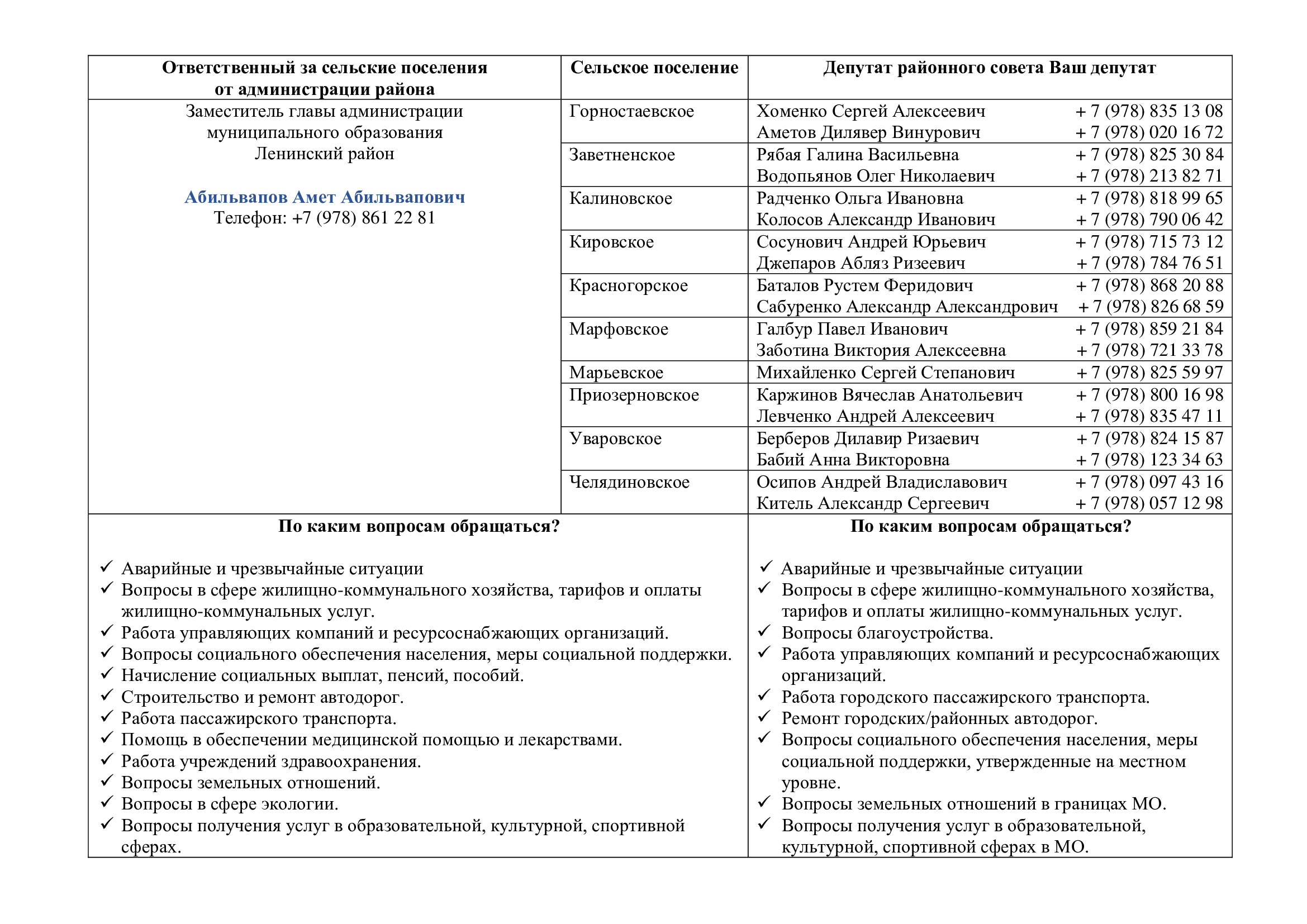Контакты руководства Ленинского района, депутатов Госсовета Крыма и райсовета от вашего поселения