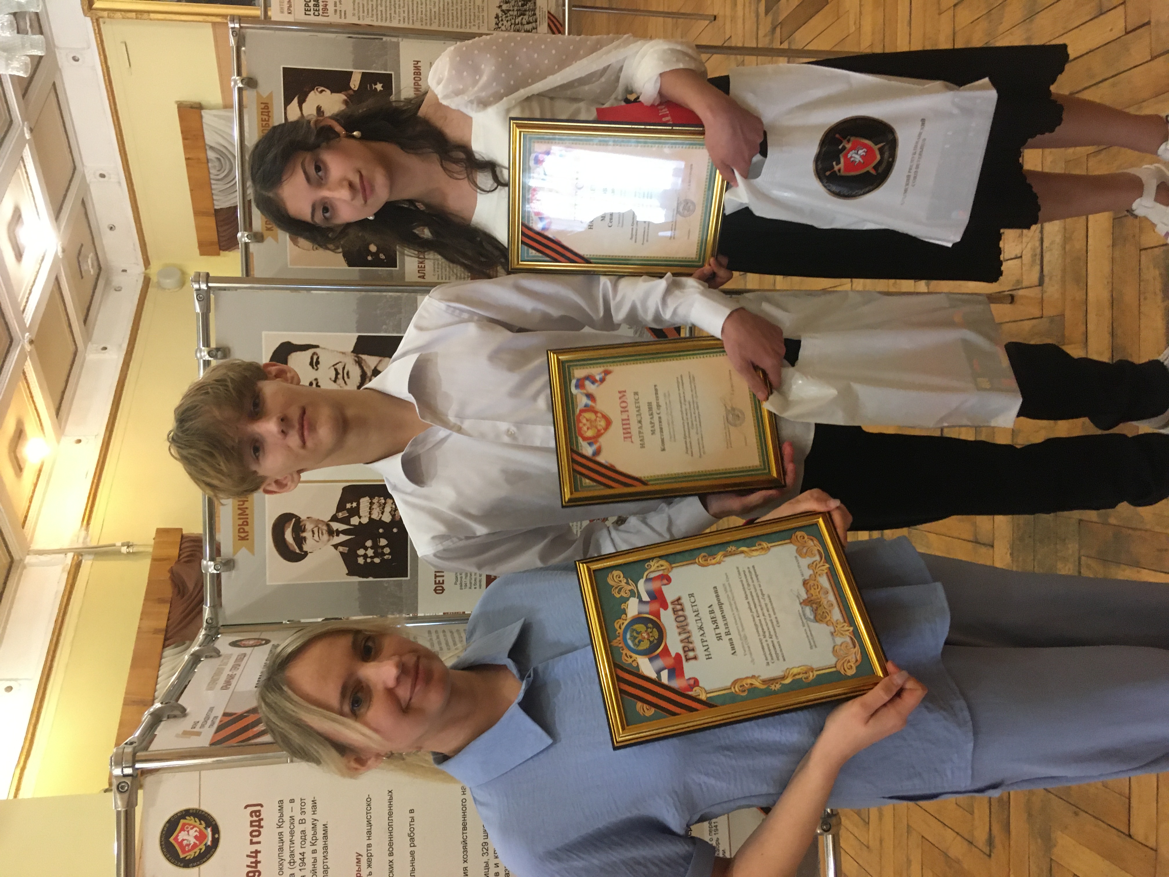25 мая 2024 года ученики 10 класса Луговской школы Севиле Мамедова и Константин Маракин приняли участие в торжественной церемонии награждения победителей Крымского республиканского конкурса сочинений «Герои не умирают. Связь поколений». Ребята отмечены дипломами и памятными призами от Крымского республиканского Союза ветеранов.