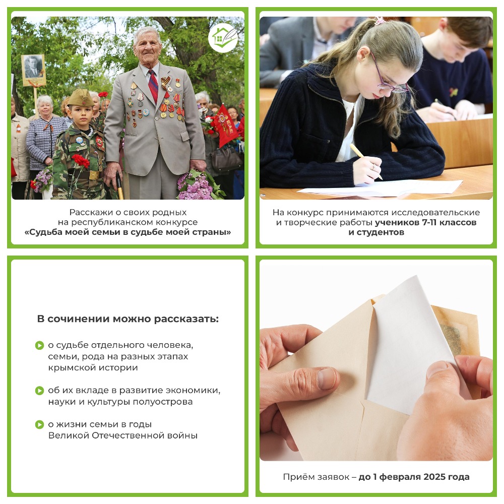 Расскажите вашу историю на Республиканском конкурсе «Судьба моей семьи в судьбе моей страны». Это уже 14 конкурс, который проводит Государственный комитет по делам архивов совместно с Крымским отделением Российского общества историков-архивистов. За годы его проведения молодёжь Крыма написала более 2 тысяч работ, которые хранятся в Госархиве республики и являются частью архивного фонда. Лучшие работы будут отмечены почётными грамотами и ценными подарками. А самые интересные исследования примут участие во Всероссийском конкурсе научно-исследовательских работ «Юный архивист».