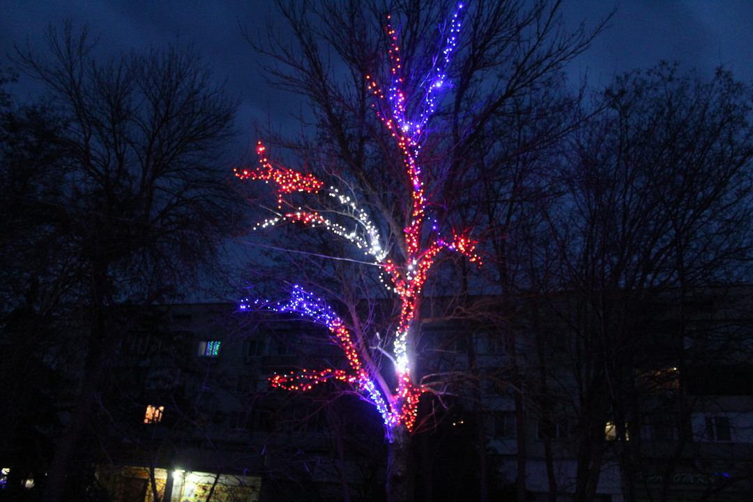 Праздничная иллюминация преображает города и посёлки и у каждого жителя нашего района создается впечатление, что он попал в сказку. Гирлянды на деревьях и фонарных столбах вдоль проспекта Ленина сияют и создают новогоднее настроение.