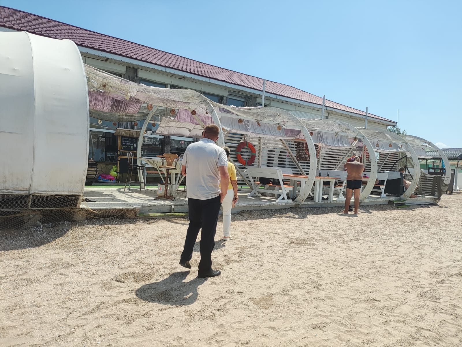 Обследовано состояние пляжной территории в селе Мысовое. Пользователь пляжа – ООО «Судебникъ». На пляже установлены лежаки, навесы, душ, раздевалки.