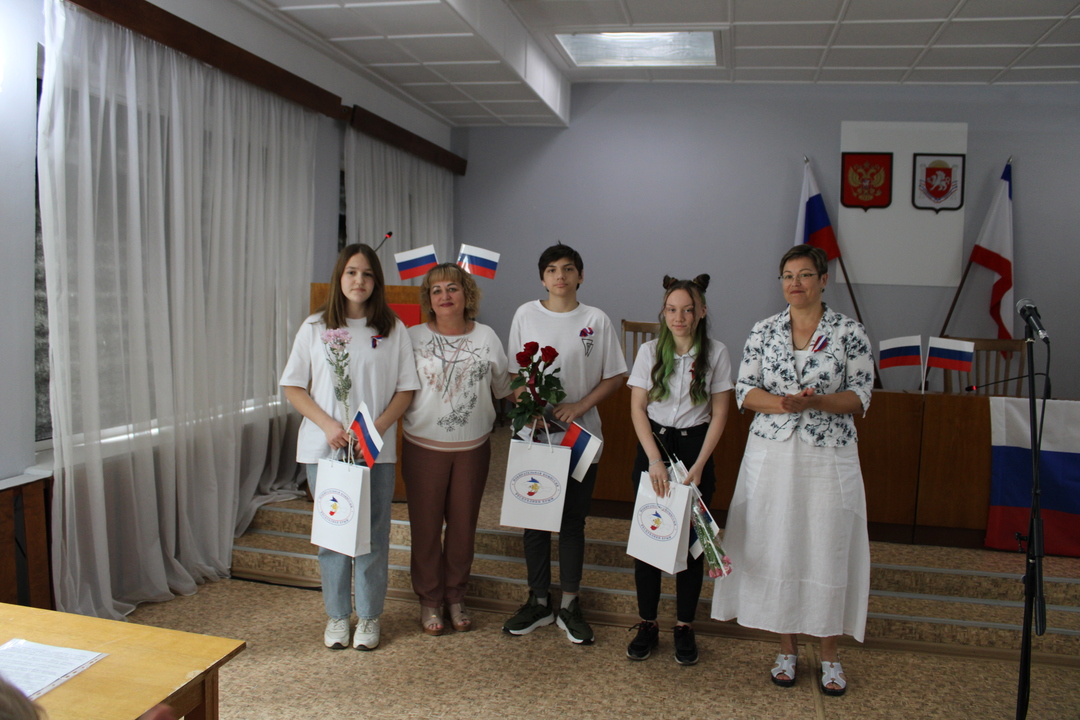Не обошлось в этот день ещё без одной традиции – вручение паспортов юным жителям Ленинского района. Главный документ гражданина Российской Федерации Садлаевой Сусанне, Пашалиди Константину и Сусликовой Анне вручили инспектор отдела по вопросам миграции ОМВД Российской Федерации по Ленинскому району Республики Крым Галина Дегтярева и председатель территориальной избирательной комиссии Ленинского района Ада Алексеева.