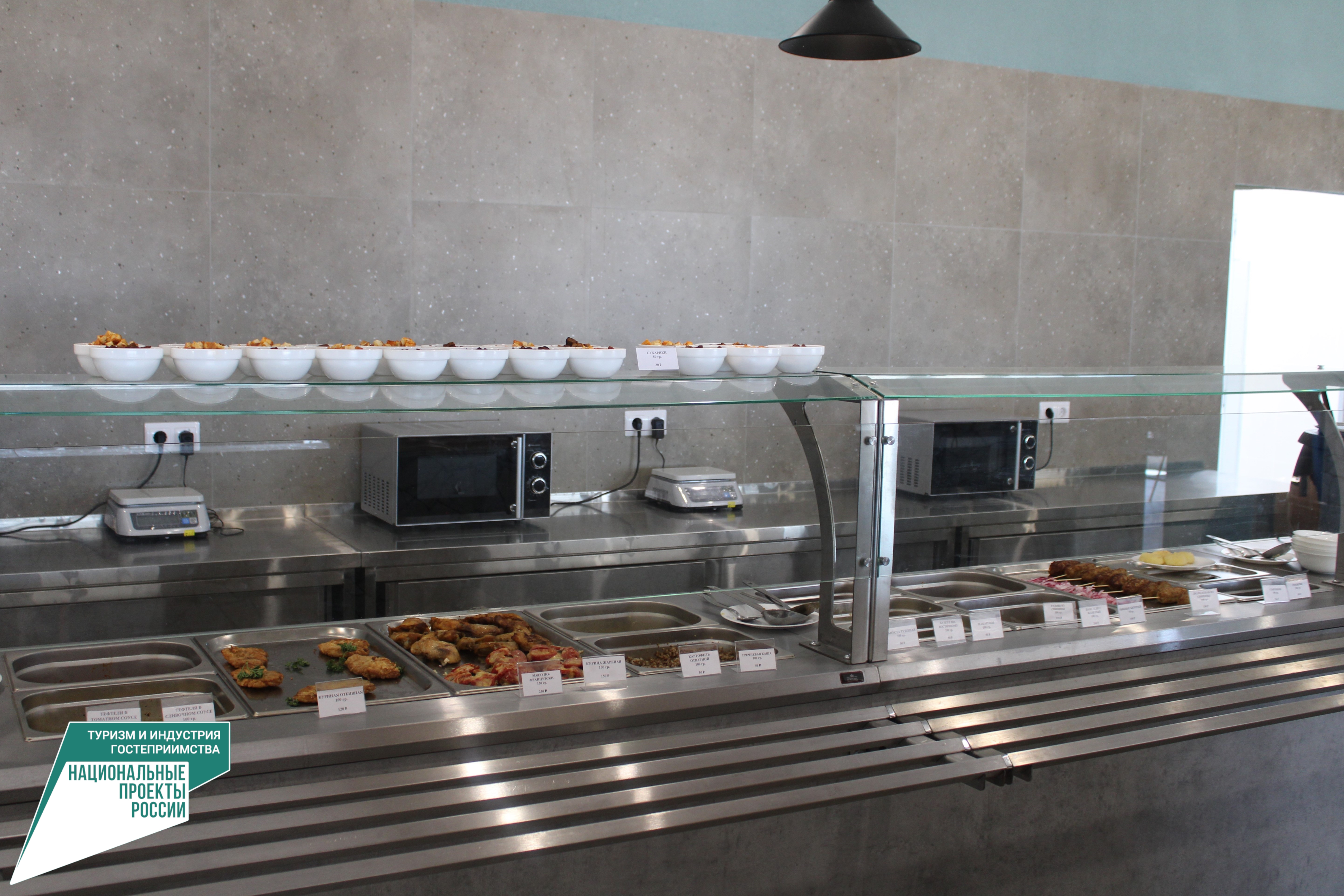 Здание модульной столовой рассчитано на 110 посадочных мест. На большой, просторной кухне все цеха разделены. Технологический процесс приготовления блюд от получения товара до выхода на раздачу проходит по современным стандартам.