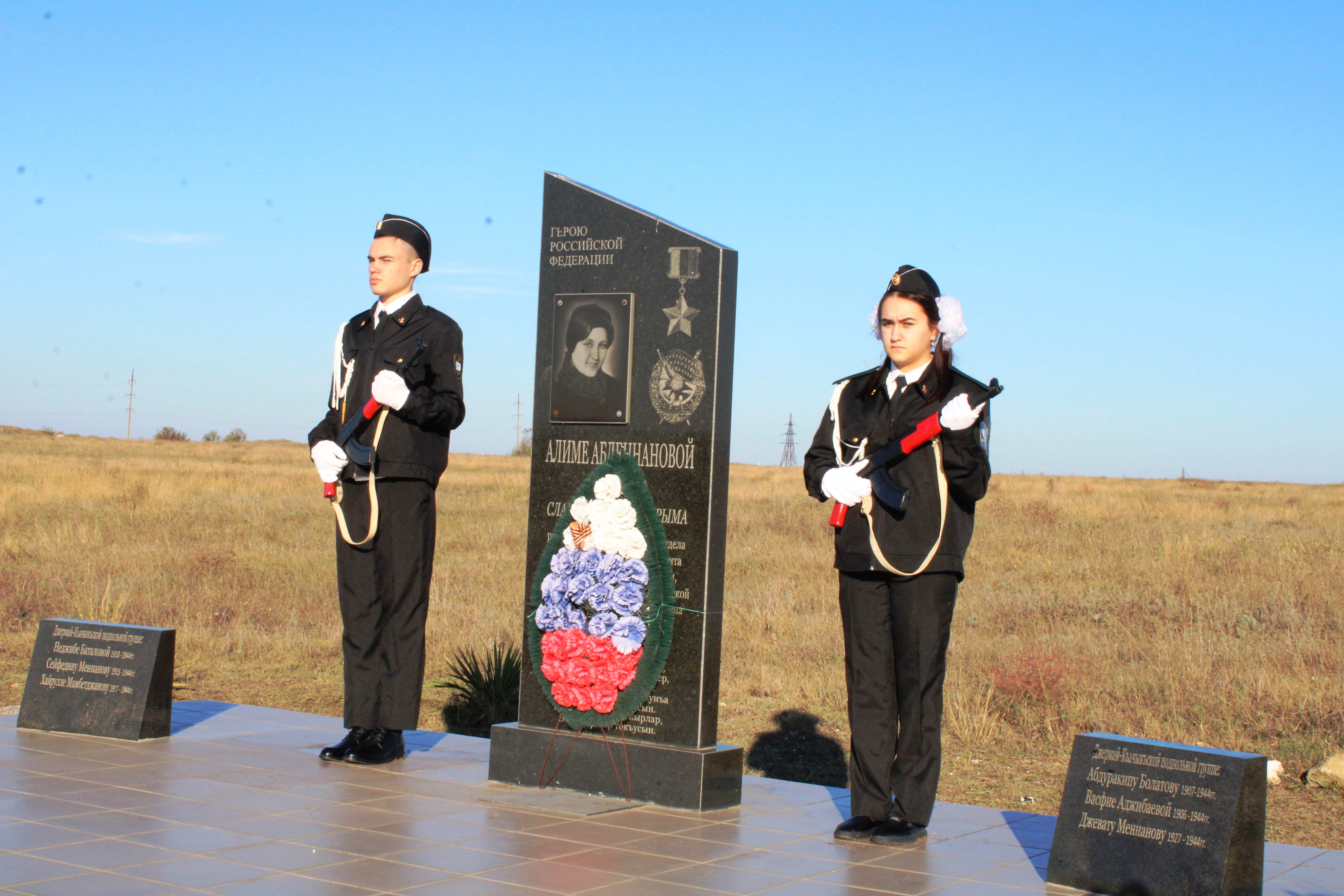 Так, возле села Ленинское к памятному знаку Алиме Абденнановой и в поселке Ленино у памятника Галины Перемещенко возложили цветы Депутат Государственного совета Республики Крым Александр Шевченко, Председатель Ленинского районного совета Виктория Заботина, руководители Администрации Ленинского района Игорь Крутьков и Амет Абильвапов, и.о. Прокурора Ленинского района Артур Попов и сотрудники прокуратуры, главы администраций села Ленинское и пгт Ленино Игорь Тикин и Олег Касьянов, Председатель совета ветеранов Ленинского района Геннадий Новиков.