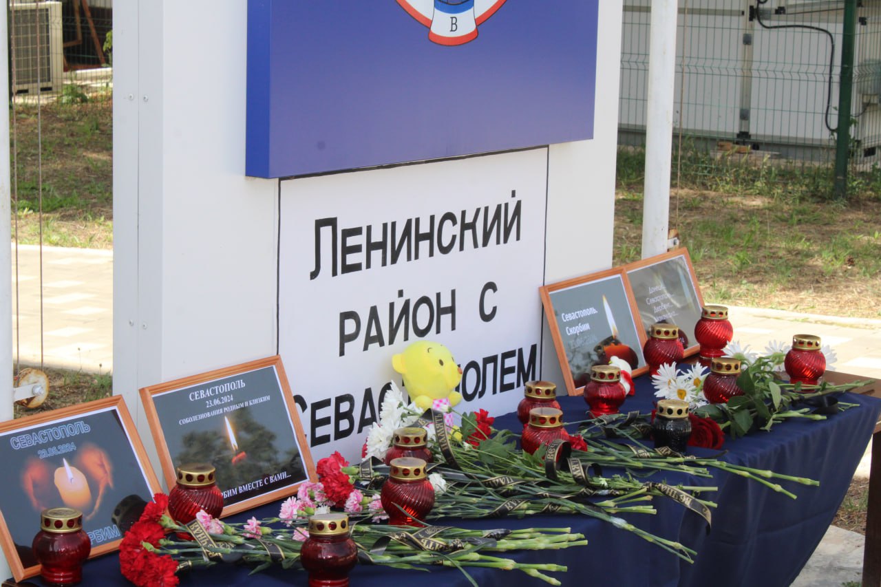 По всей России проходят акции скорби. В рамках траурных мероприятий в Ленино, Багерово и Щёлкино, а также ряде сёл Ленинского района организованы стихийные мемориалы для почтения памяти погибших от террористической атаки киевского режима на город-герой.