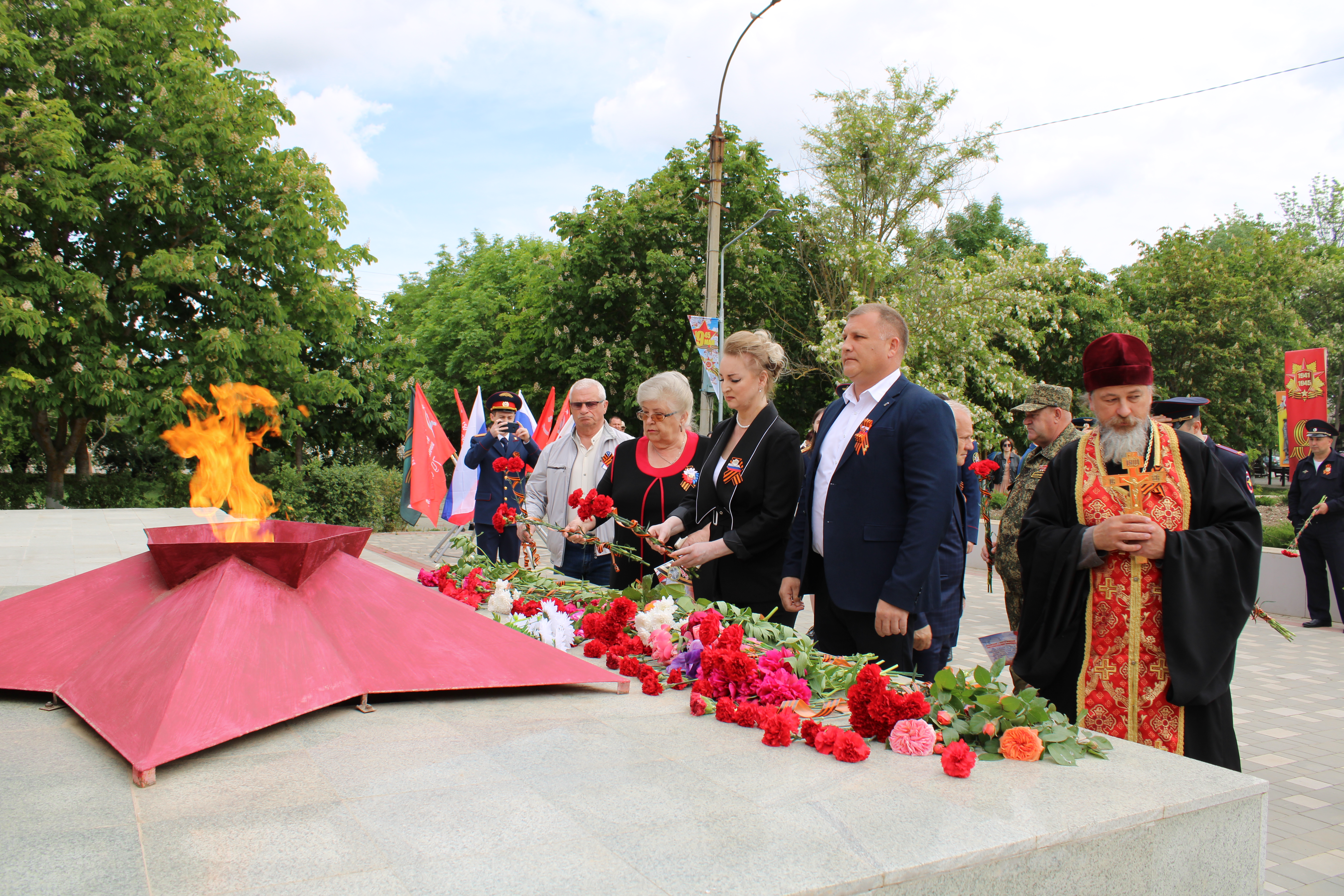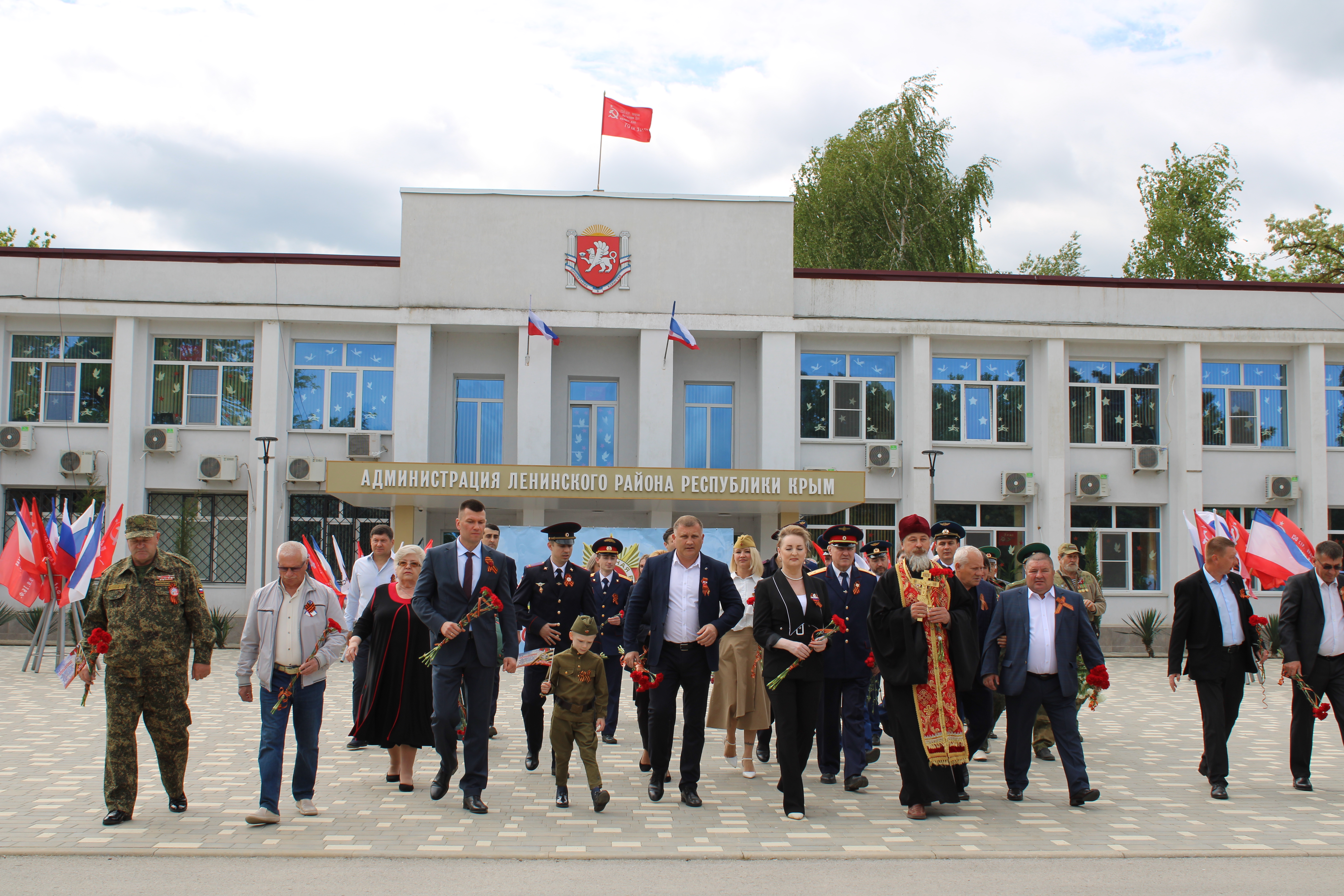 Также в посёлке Ленино состоялось торжественное возложение цветов к Обелиску Славы. В мероприятии приняли участие: руководство Ленинского района, правоохранительные и контролирующие органы, настоятель храма Иоанна Кронштадтского отец Ростислав, Волонтёры Победы, военнослужащие, ветераны, жители и гости района. В ходе мероприятия присутствующие почтили память павших героев минутой молчания.