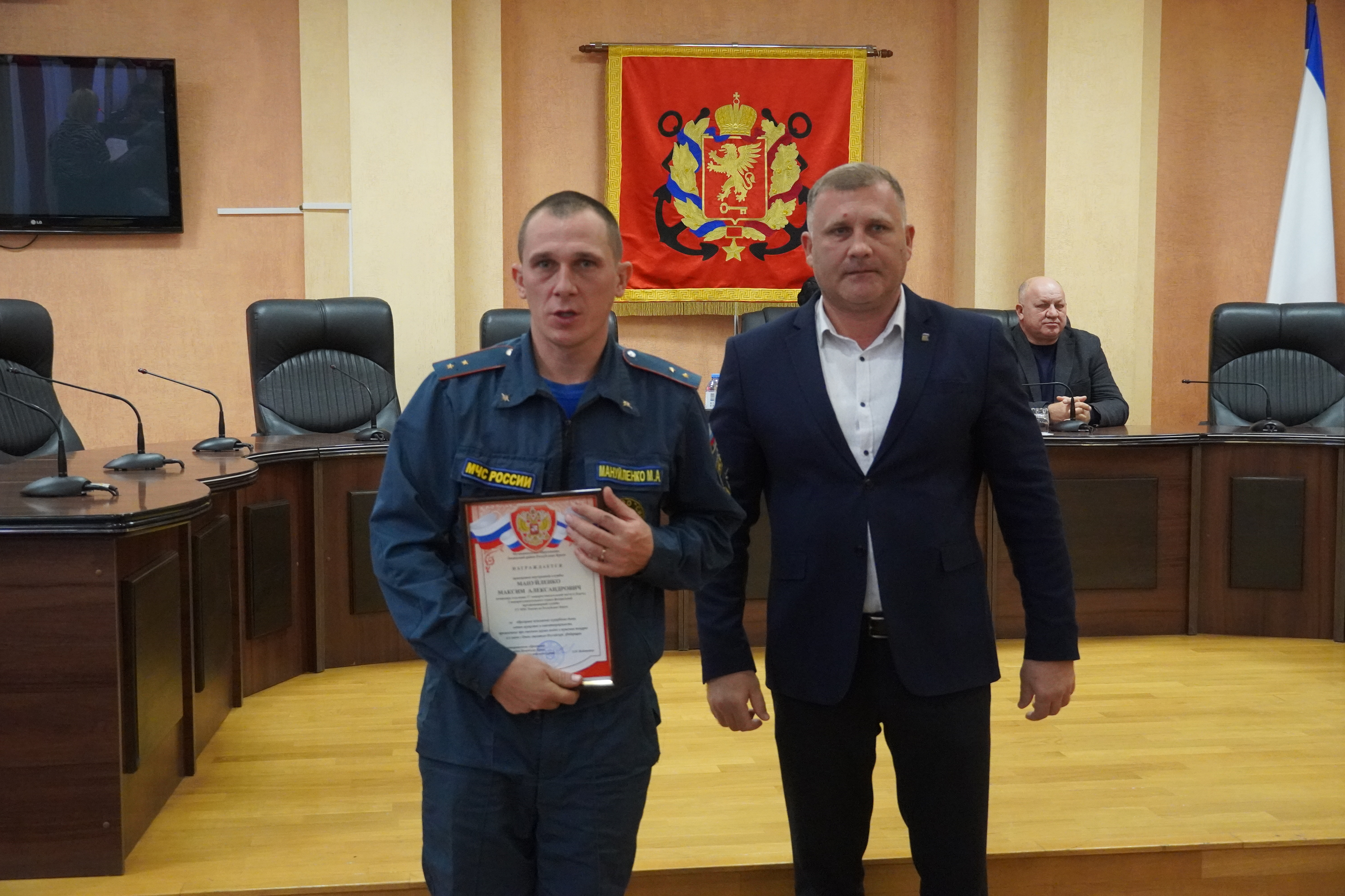 В ходе торжественного собрания состоялось награждение сотрудников 3 пожарно-спасательного отряда Федеральной пожарной службы МЧС России по Республике Крым.