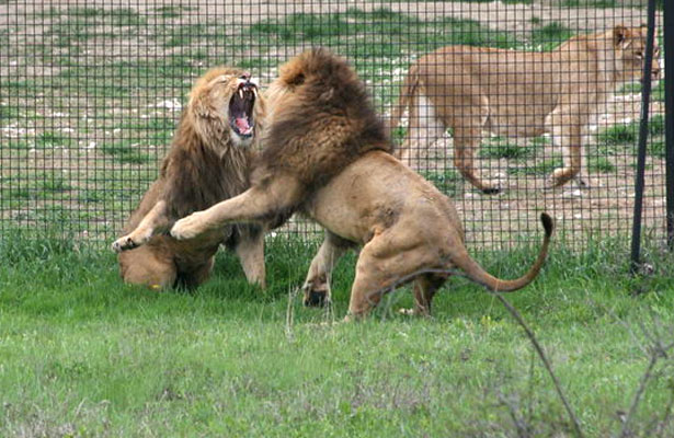 Когда выпустили львов из зимних вольеров на открытое пространство, возникли проблемы: «За зиму хищники привыкли к спокойной жизни в вольере, к готовой еде. А теперь им нужно снова отвоевывать себе территорию, самок, бороться за мясо. На это уйдет 2-3 дня», — отметила работник зоопарка Леокадия Перевалова.