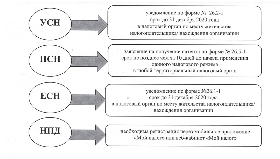 Уважаемые предприниматели! При принятии решения о переходе на иные специальные налоговые режимы с 1 января 2021 года, Вам необходимо подать следующие документы: