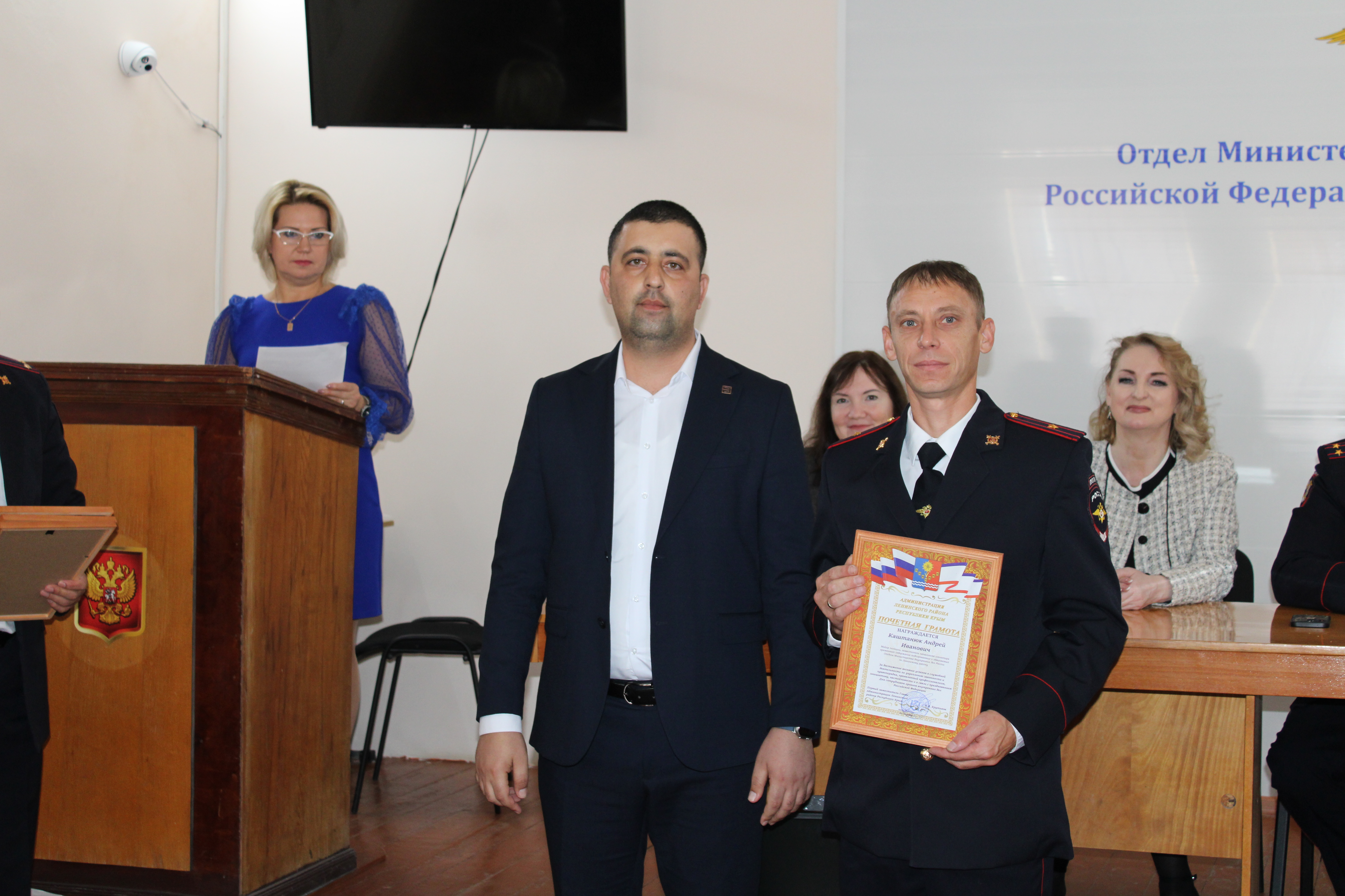 В преддверии профессионального праздника сотрудников органов внутренних дел в районном отделении МВД прошло торжественное мероприятие. На нём собрались все сотрудники Отдела МВД России по Ленинскому району Республики Крым.